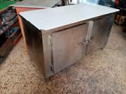 Μεταχειρισμένο ψυγείο πάγκος ανοξειδωτο,με επενδυση ξυλου στο μπροστα μερος [που βγαινει και πισω εχει ινοχ],με 2 πόρτες, εξωτερικό μοτέρ,στοιχειο βεβιασμενης κυκλοφοριας, σε καλή κατάσταση. Διαστάσεις 151Χ71Χ87.