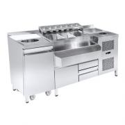 Διαθέτει ψυχομενο χωρο με 2 πορτες , γούρνα, pitcher rinser, μονωμένη παγολεκάνη, speed rail και θέση για γαστρονόμους.