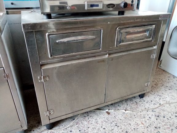 Βιτρίνα θερμαινόμενη επιδαπέδια ανοξειδωτη αεροθερμη ,με διακοσμηση μπροστα ,παγκοσ στο κατω μερος με συρομενα ,ραδι ανοξειδωτο στην βιτρινα ,με φωτισμο ,διαστασης 150Χ75Χ132