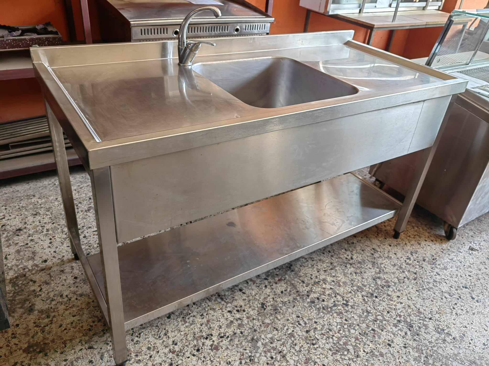 Λάντζα ανοξείδωτη μεταχειρισμένη, με μια γούρνα στην μέση [50χ50χ30], με πάσο δεξιά αριστερά .[48χ63], με θερμομεικτικη βρύση 2 παροχών νερου, και ανοικτή στο κάτω μέρος... ΔΙΑΣΤ.158Χ70Χ89